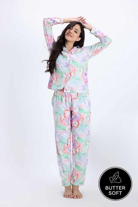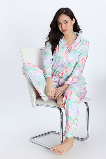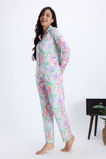Zivame Buttersoft Knit Poly Pyjama Set - Lavender Fog