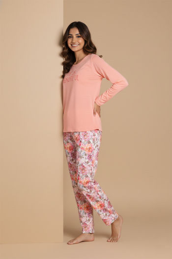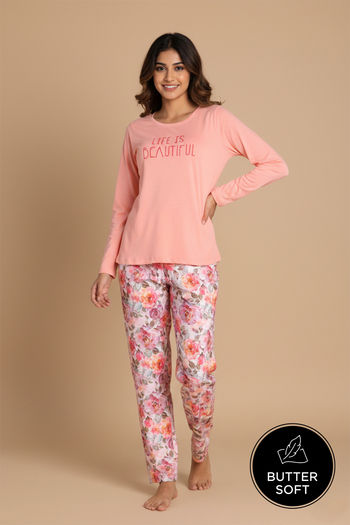 Zivame Buttersoft Knit Poly Pyjama Set - Pearl