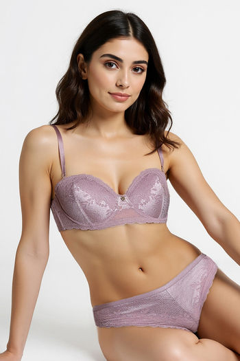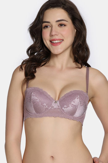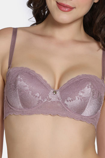 Zivame Celeste & Rose Padded Wired 3/4Th Coverage Strapless Bra - Elderberry