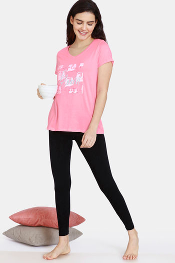 Zivame Colored Twigs Knit Cotton Top - Pink Ice
