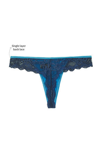 Zivame Contrast Scallop Lace Low Rise Thong-Blue