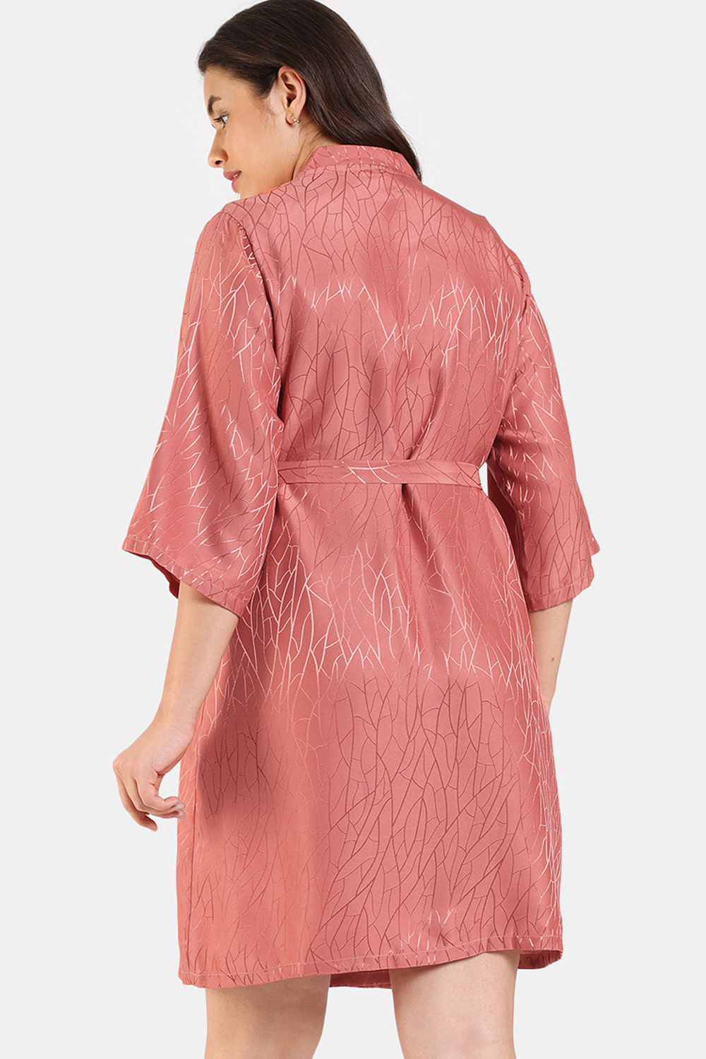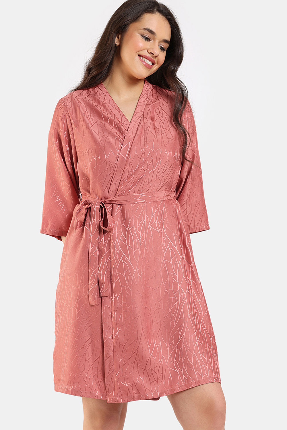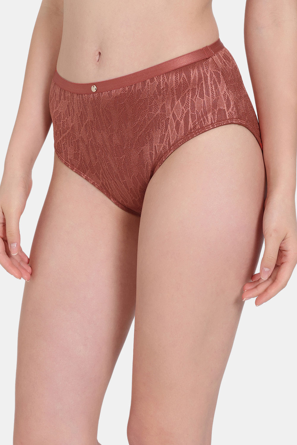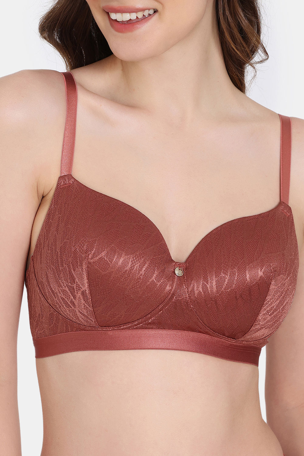 Zivame Coral Glaze Padded Non-Wired 3/4th Coverage Lace Bra With Hipster Panty and Robe - Cinnabar