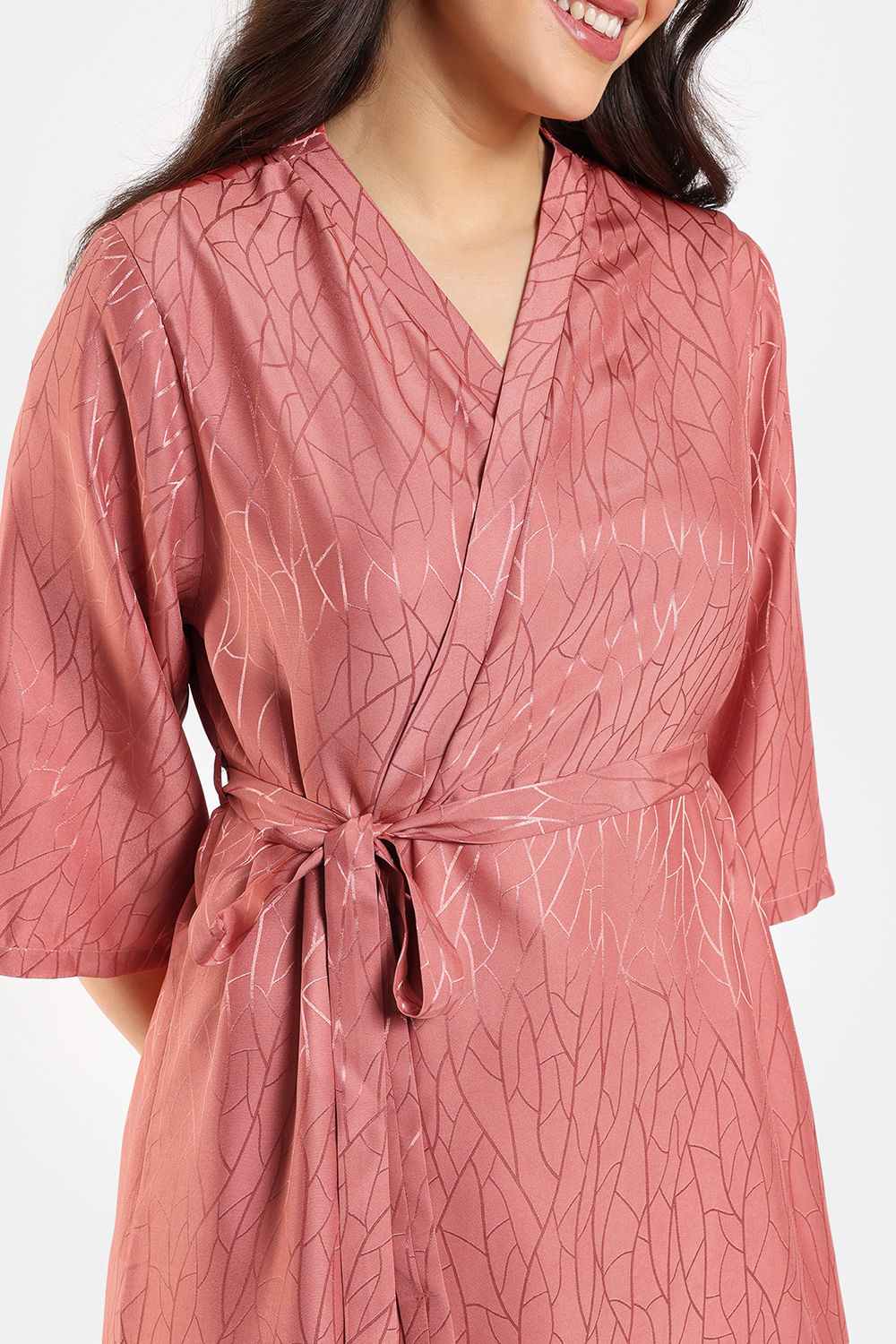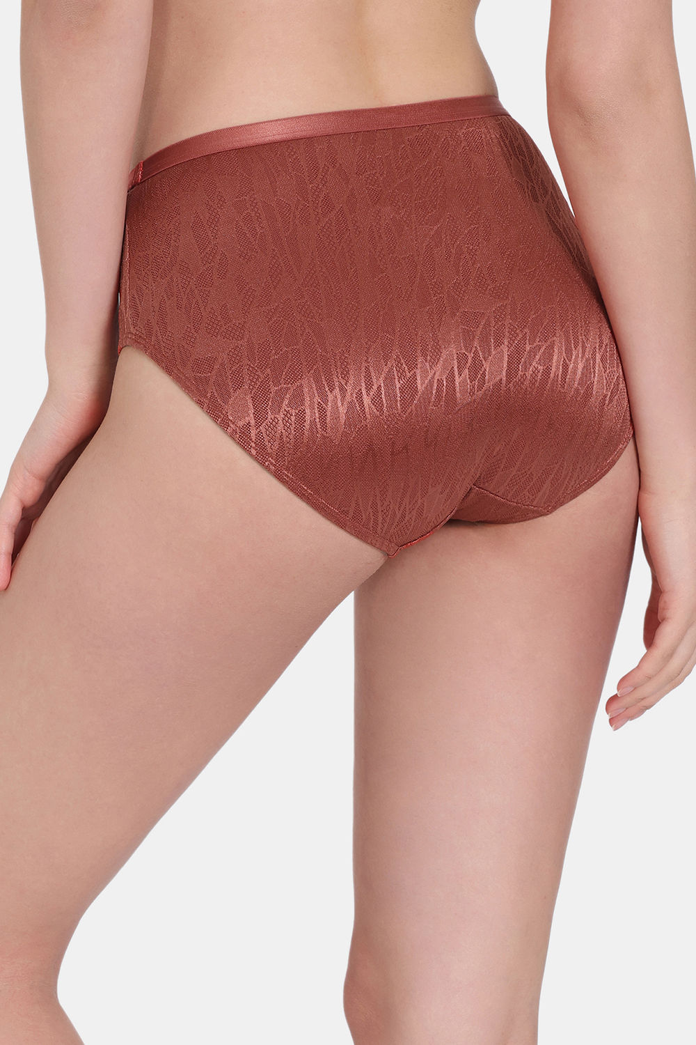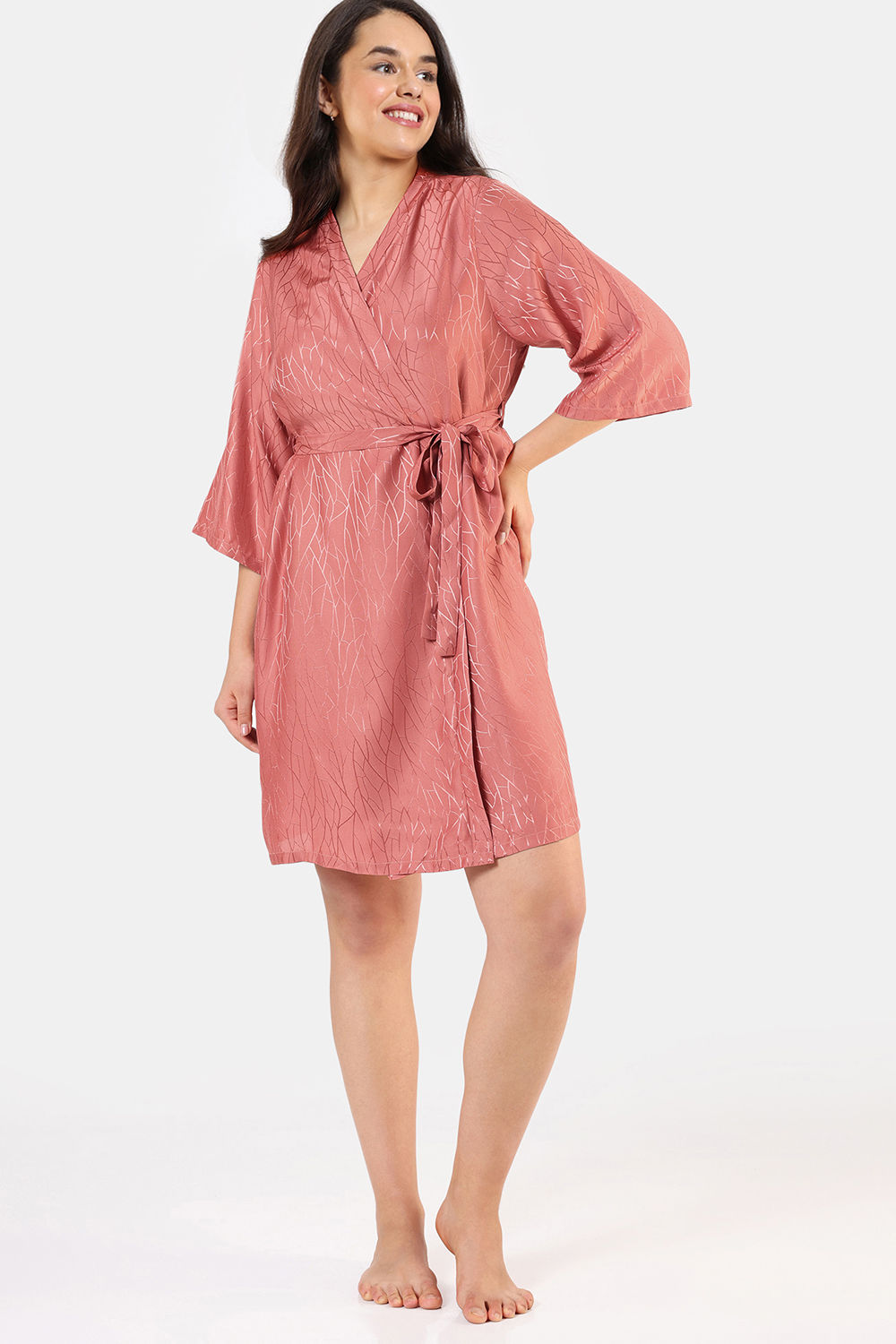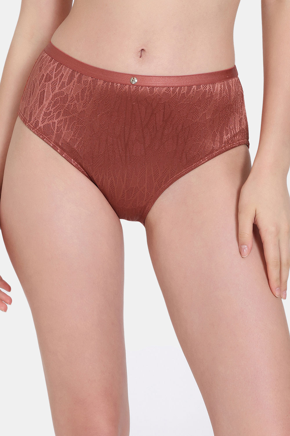 Zivame Coral Glaze Padded Non-Wired 3/4th Coverage Lace Bra With Hipster Panty and Robe - Cinnabar