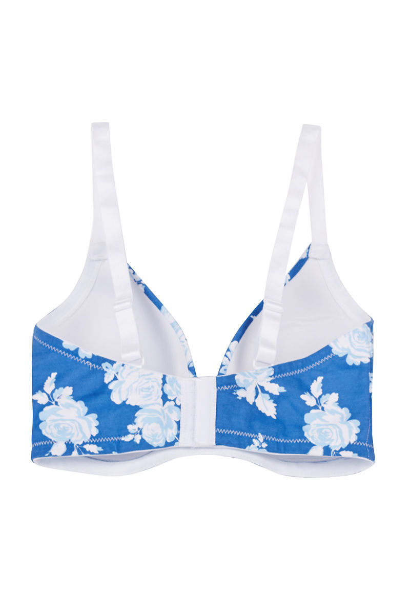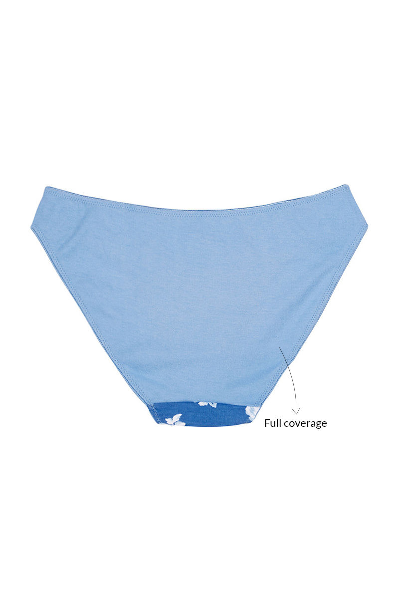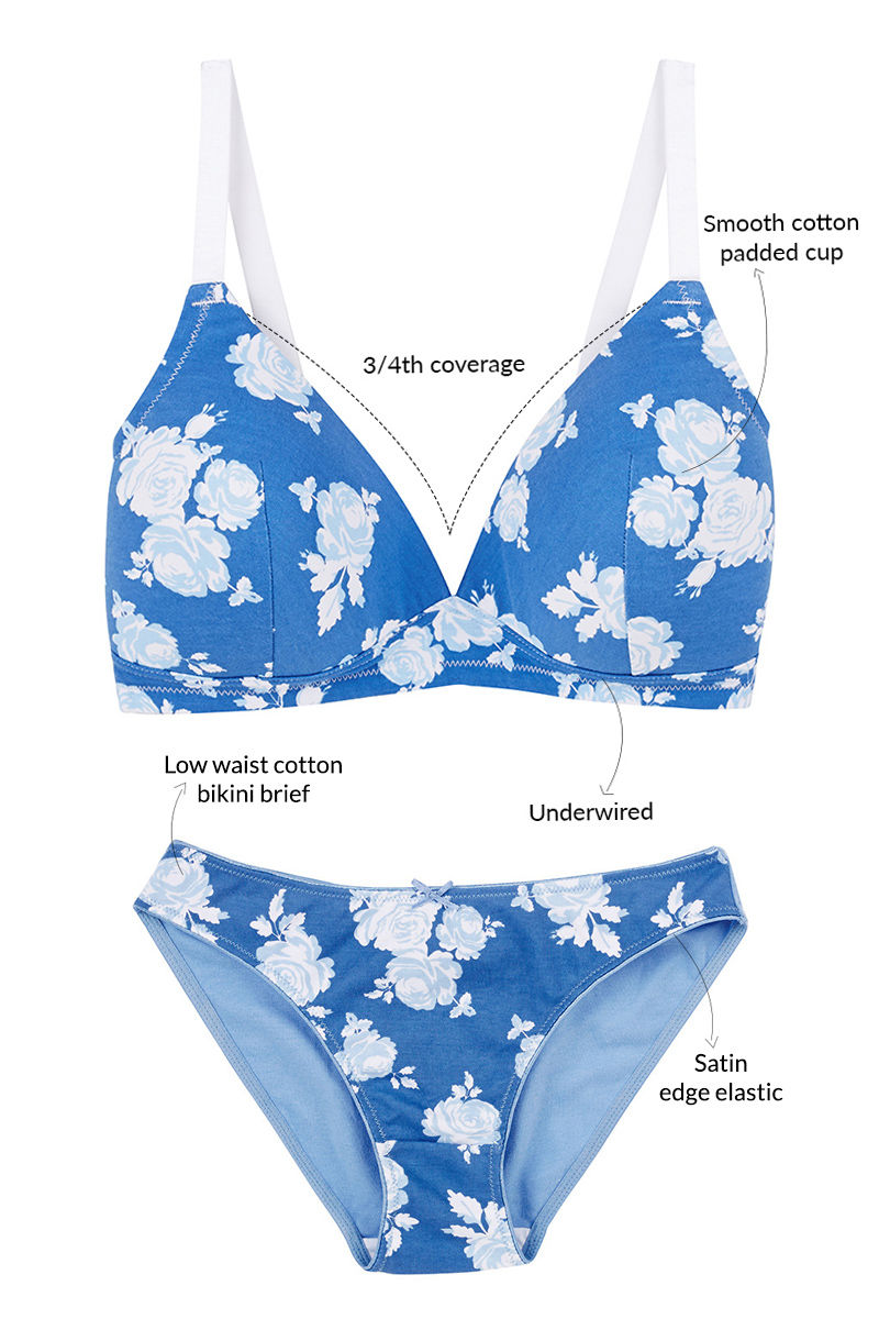 Zivame Cotton Fresh Blossom Bloom Underwired T-Shirt Bra with Bikini Panty- Blue