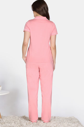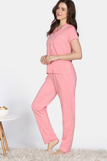 Zivame Cotton Tencel Pyjama Set - Pink Icing