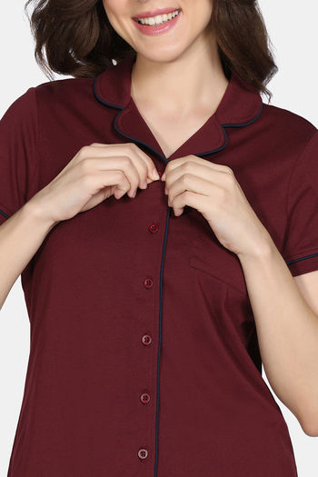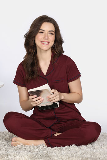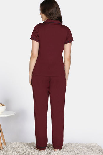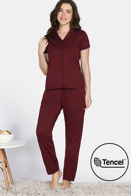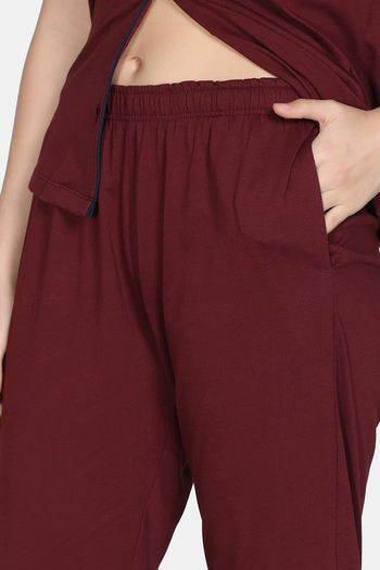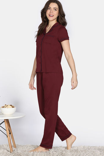 Zivame Cotton Tencel Pyjama Set - Pomegranate
