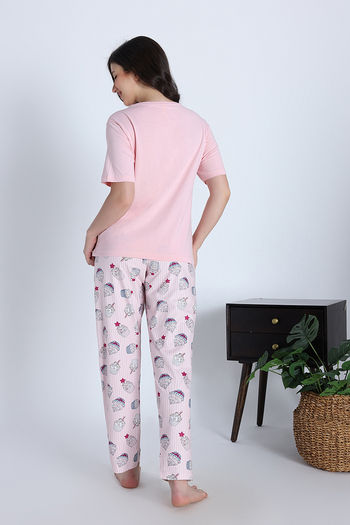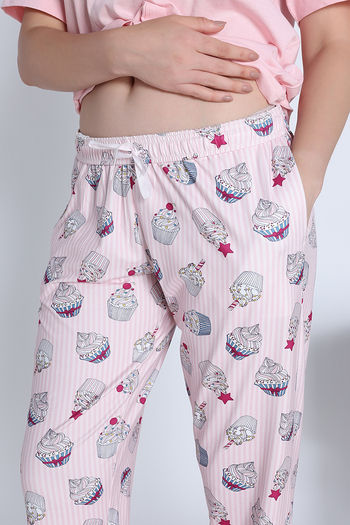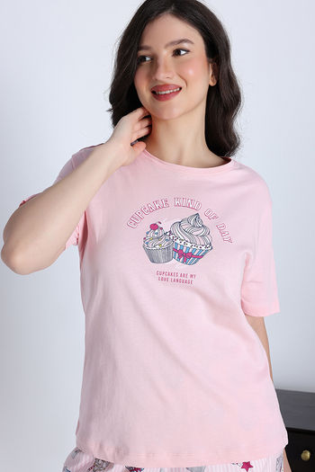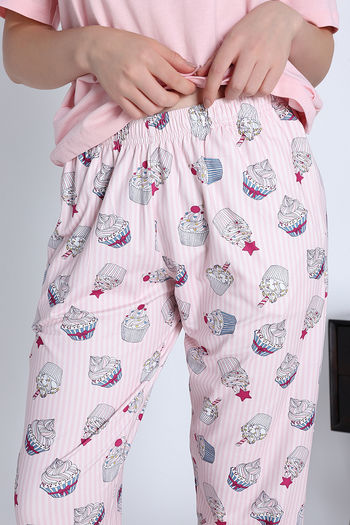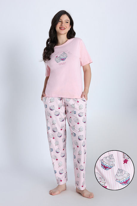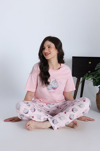 Zivame Cup Cake Knit Poly Pyjama Set - Heavenly Pink
