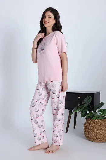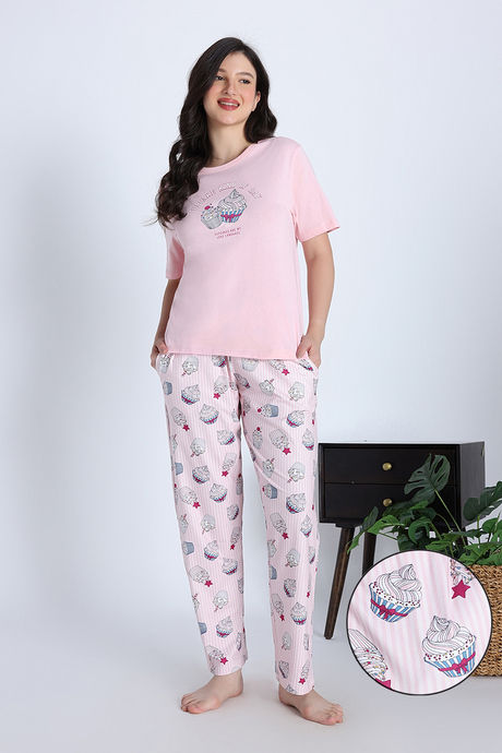 Zivame Cup Cake Knit Poly Pyjama Set - Heavenly Pink