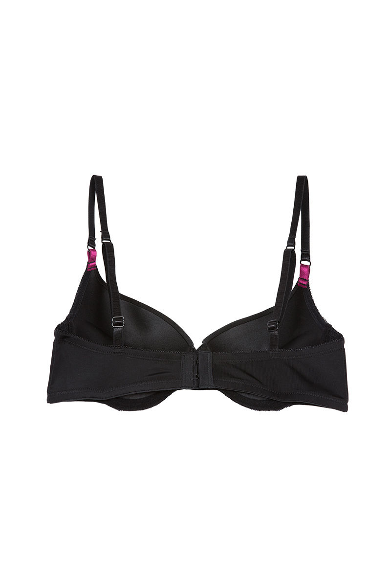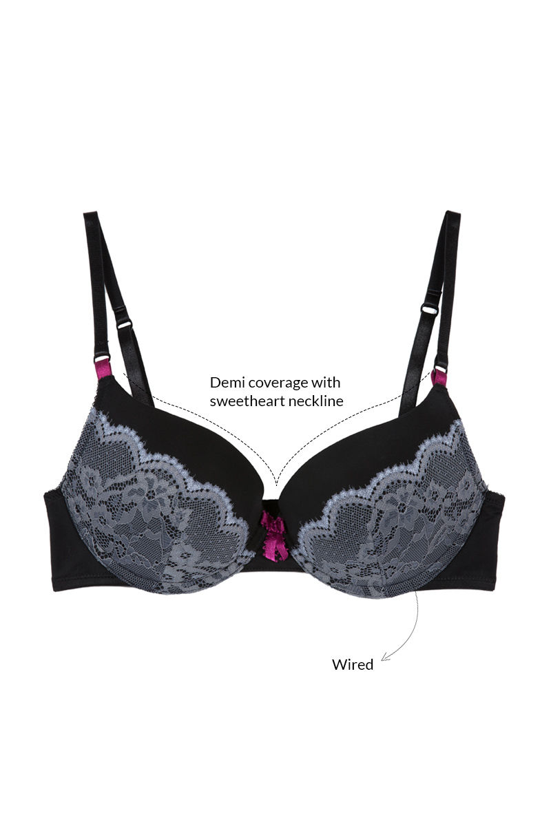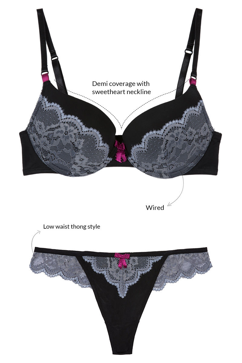 Zivame Cuppa Contrast Moderate Pushup Bra With Scallop Lace Thong- Black