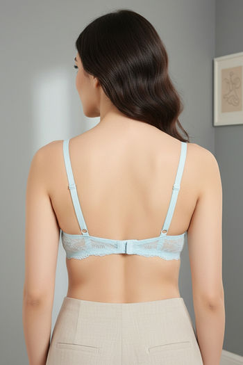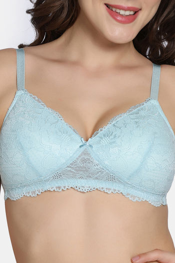 Zivame Dreamcatcher Padded Non Wired Medium Coverage Lace Bra - Crystal Blue