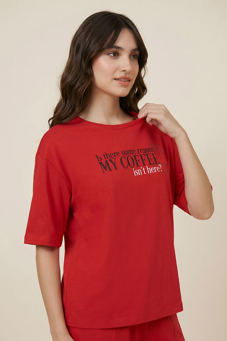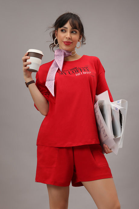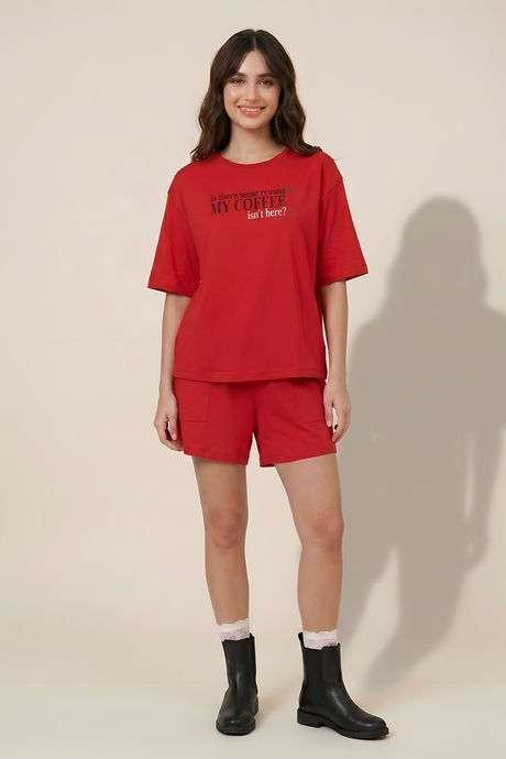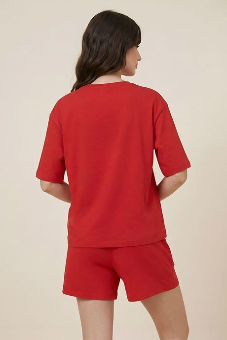 Zivame Devil Wears Prada Knit Cotton Loungewear Short Set - Flame Scarlet