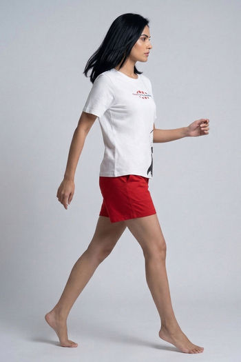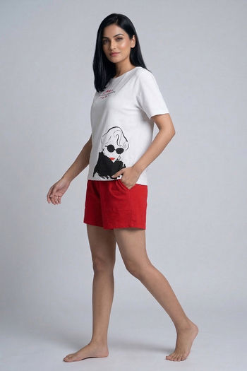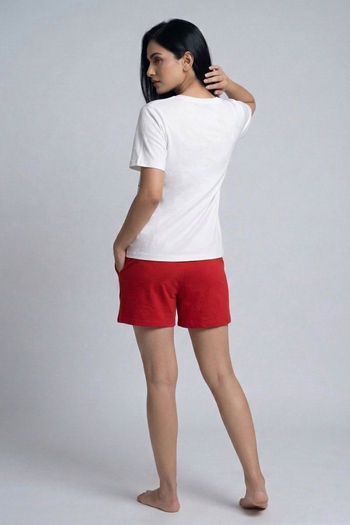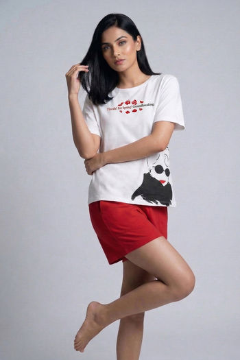 Zivame Devil Wears Prada Knit Cotton Loungewear Short Set - Flame Scarlet
