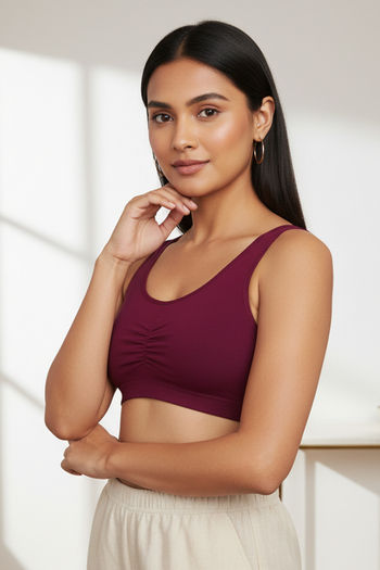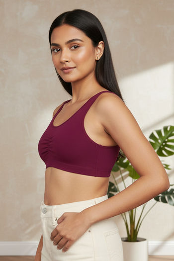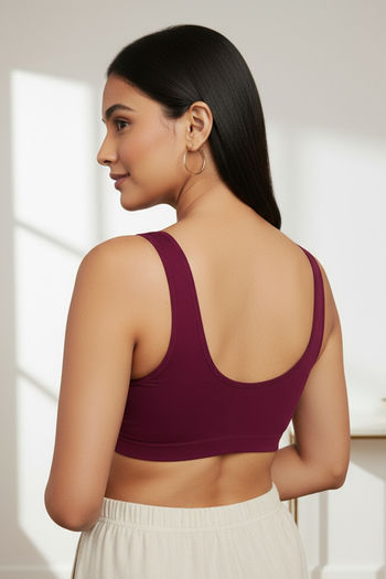 Zivame Double Layered Full Coverage Non Wired Slip-on Home Bra - Plum