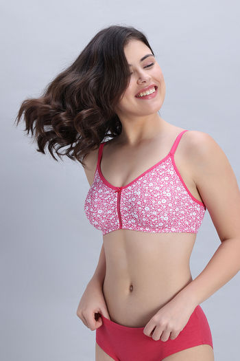 Zivame Double Layered Non Wired 3/4th Coverage Bra - Dark Pink Floral