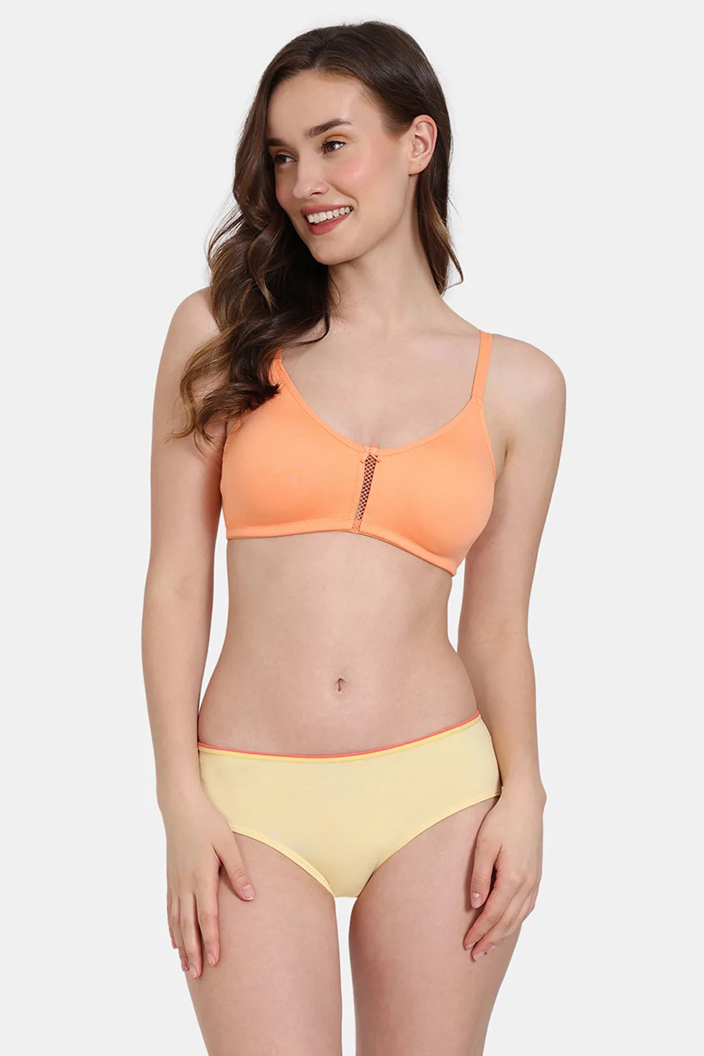 Zivame Double Layered Non Wired 3/4th Coverage Bra With Hipster Panty - Cntlupe M Yellow
