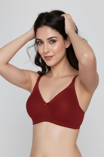 Zivame Double Layered Non Wired 3/4th Coverage Tshirt Bra - Red Dahlia