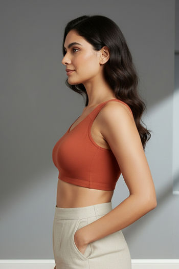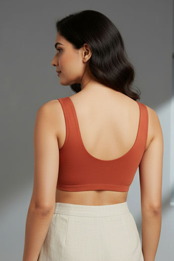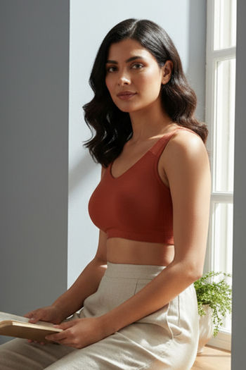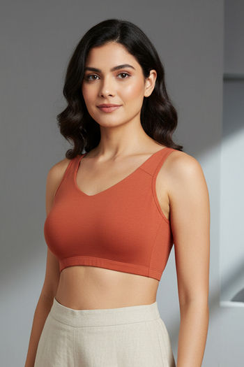 Zivame Double Layered Non Wired Full Coverage Bralette - Burnt Ochre