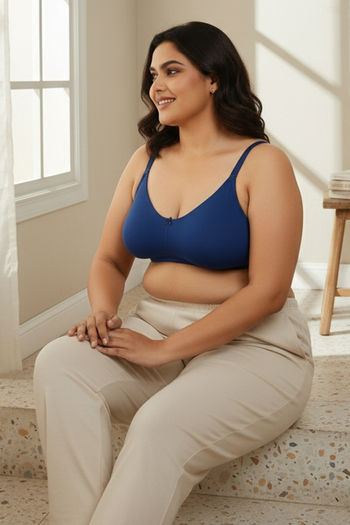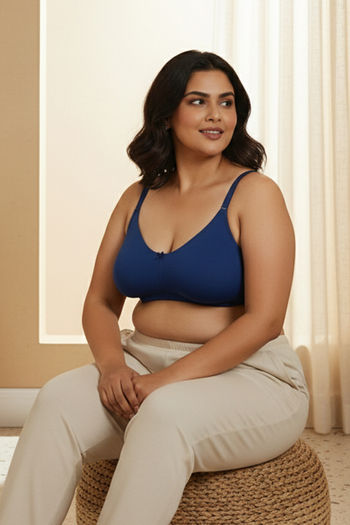 Zivame True Curv Double Layered Non Wired 3/4th Coverage Sag Lift Bra - Navy Peony