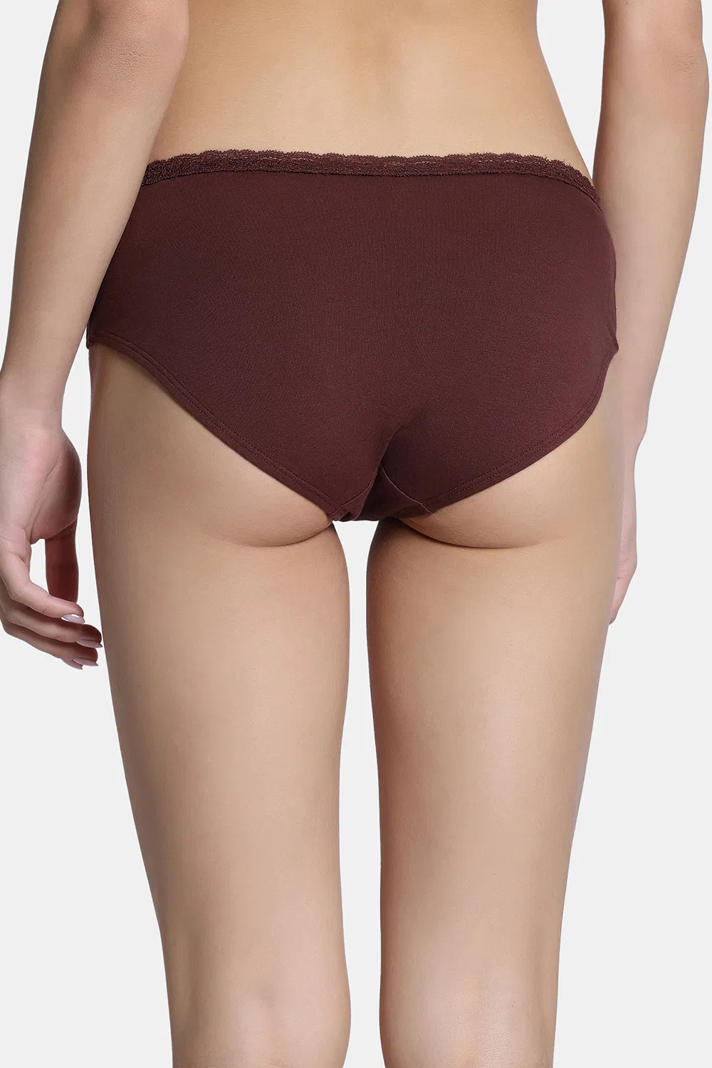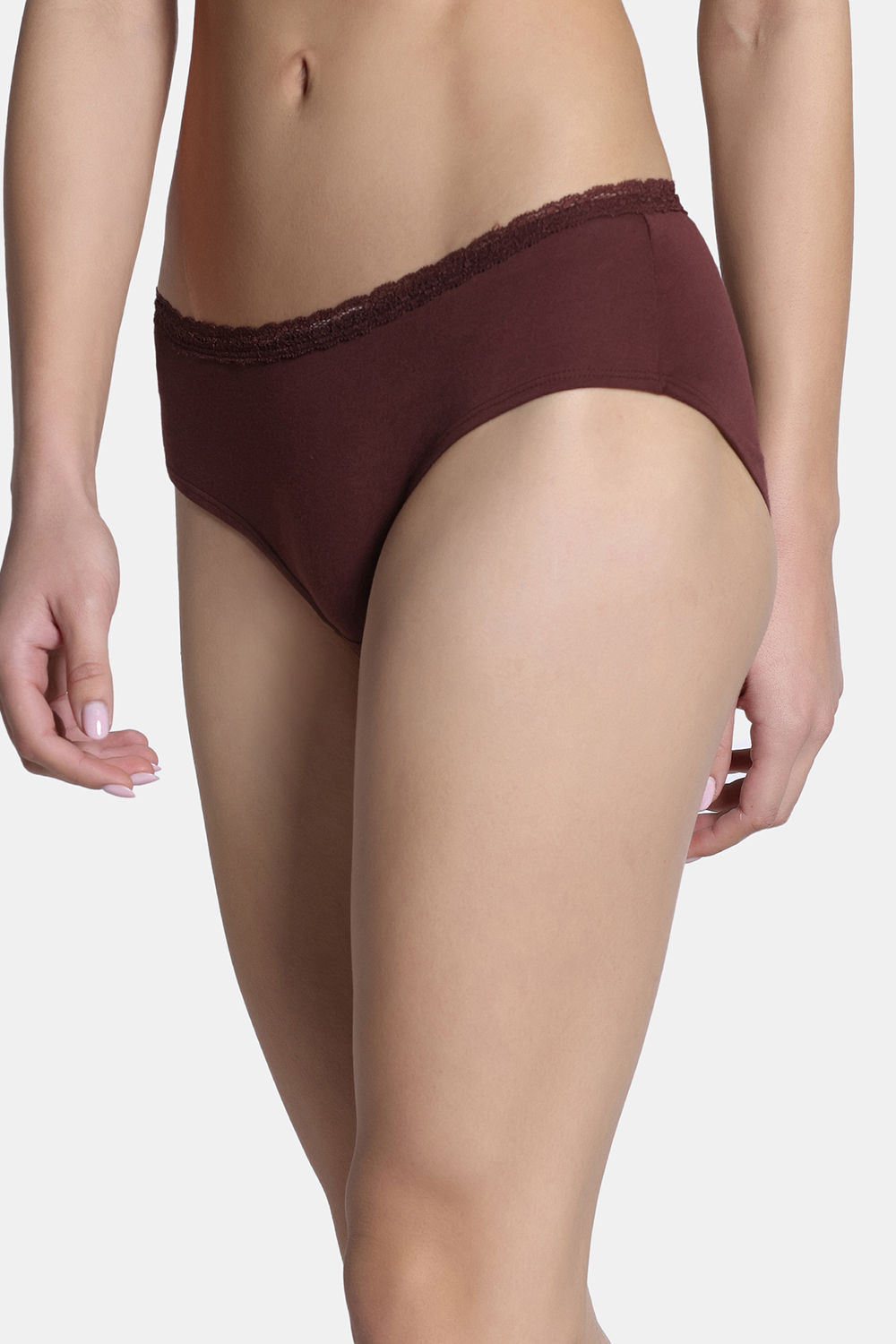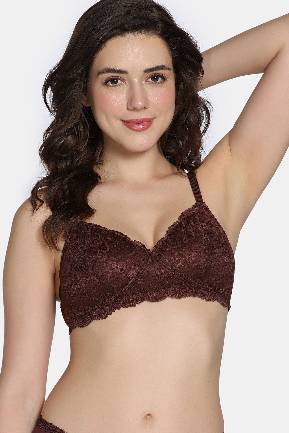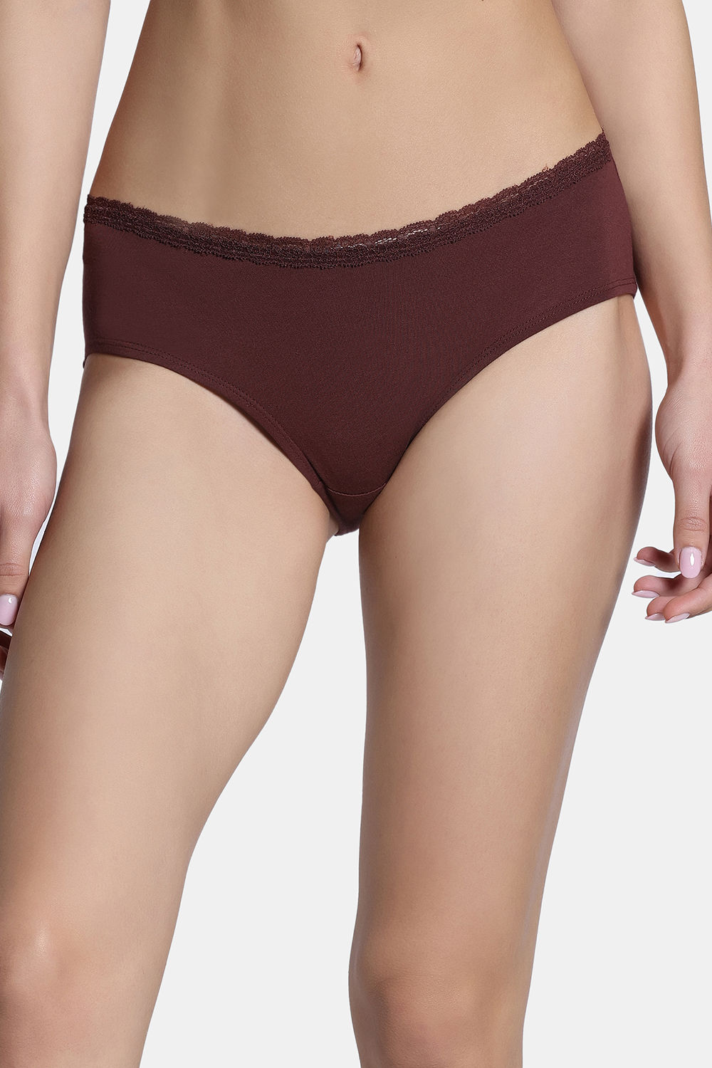 Zivame Dreamcatcher Padded Non Wired Medium Coverage Lace Bra with Full Coverage Hipster Panty - Rum Raisin