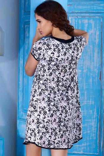 Zivame Dreamwear Misty Flowers Mid Thigh Nightdress