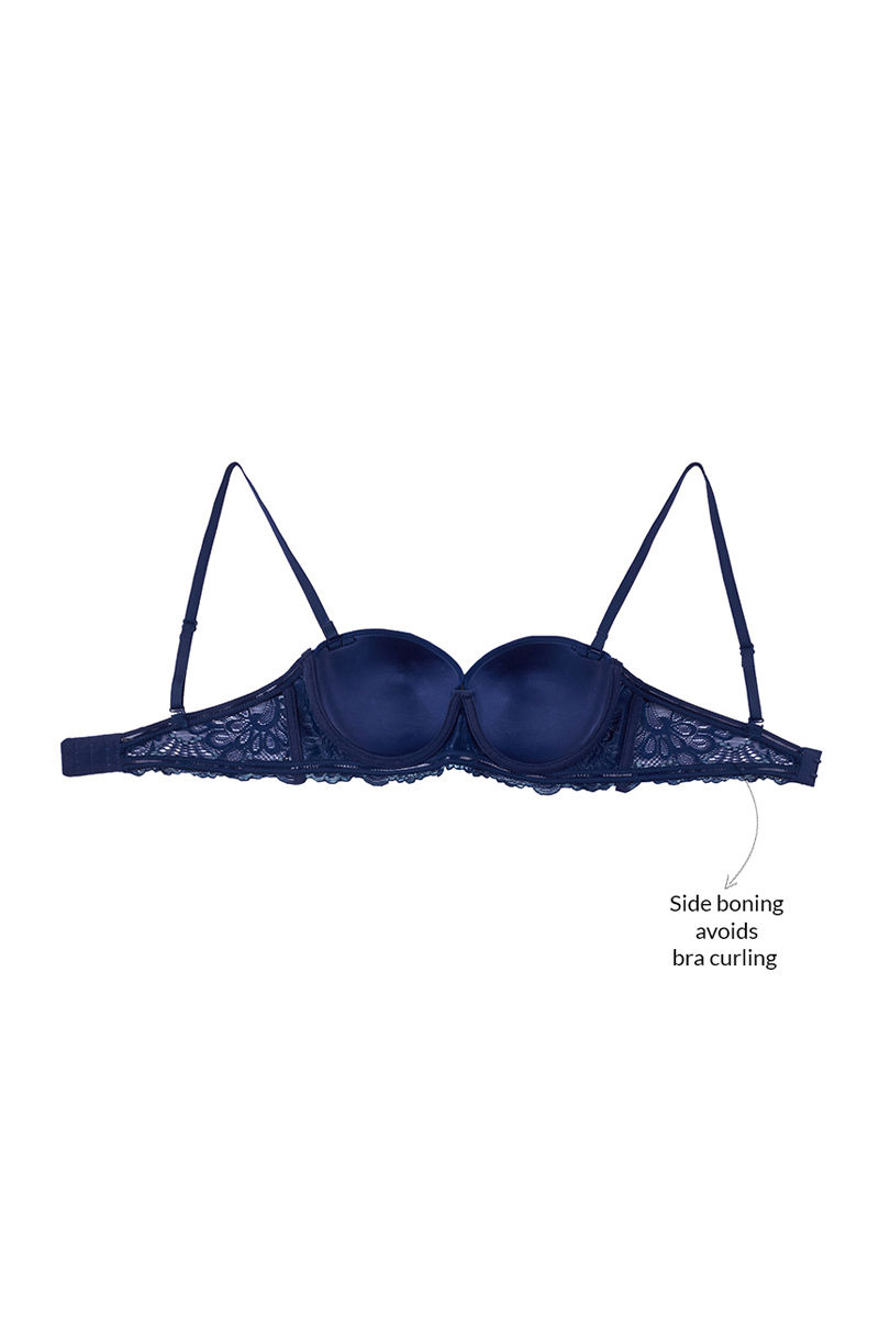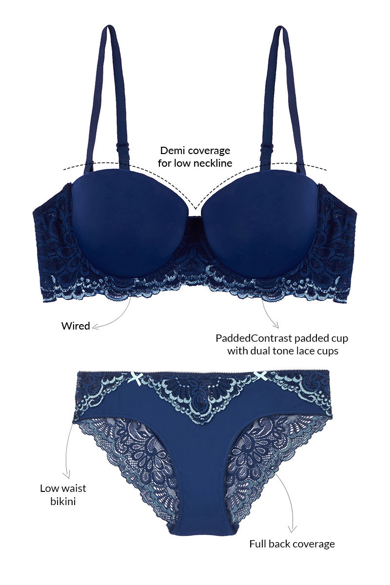 Zivame Dual Toned Strapless T Shirt Bra With Low Rise Bikini Panty-Blue