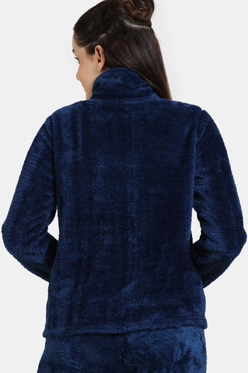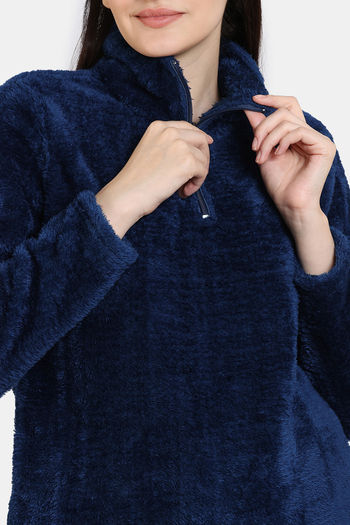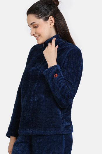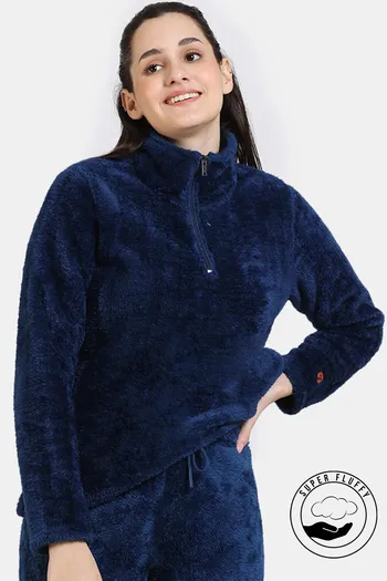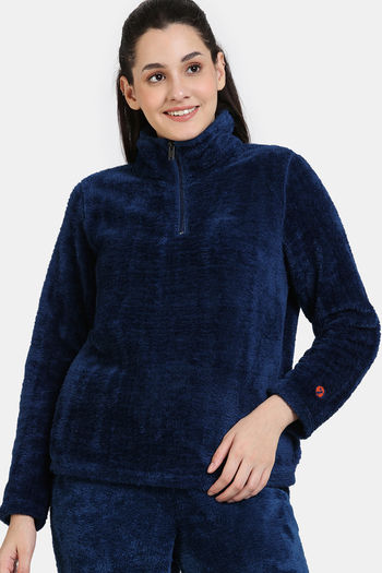 Zivame Fancy Fur Knit Poly Sweatshirt - Poseidon