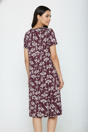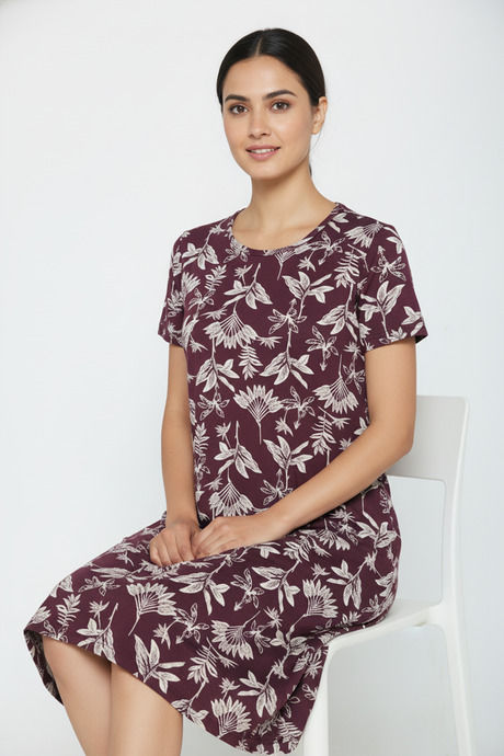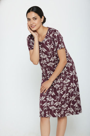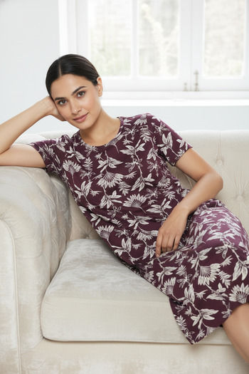 Zivame Farm Lore Knit Cotton Knee Length Nightdress - Fig