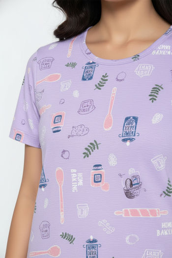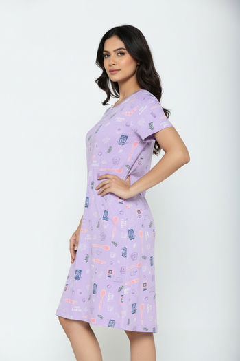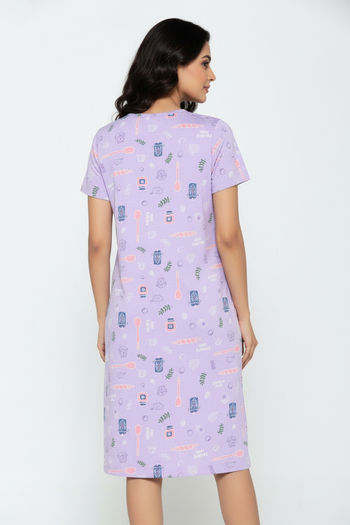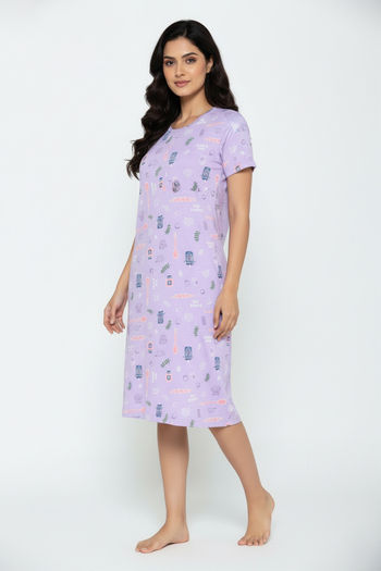 Zivame Farm Lore Knit Cotton Knee Length Nightdress - Lilac Breeze