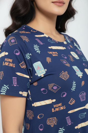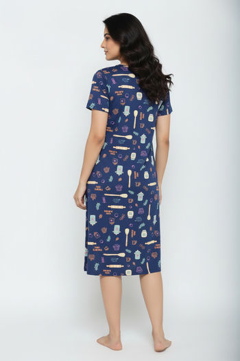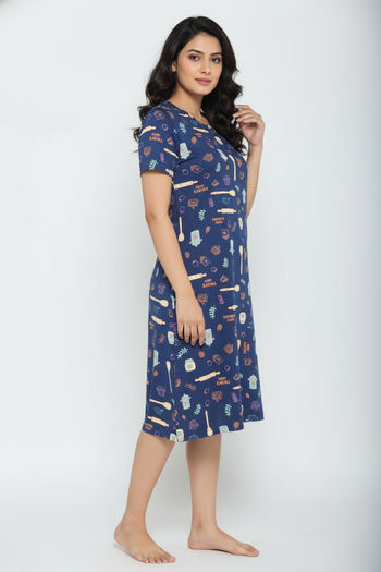 Zivame Farm Lore Knit Cotton Knee Length Nightdress - Set Sail