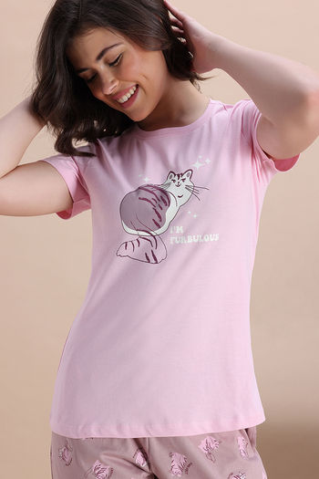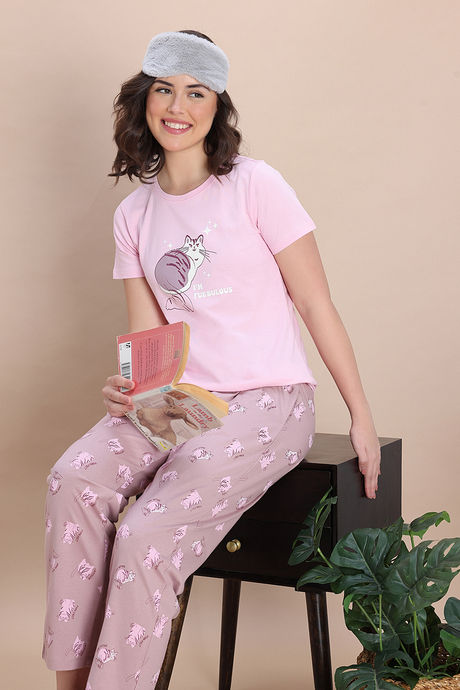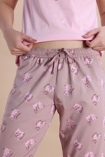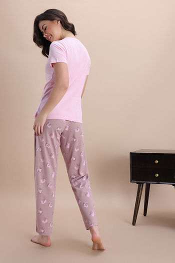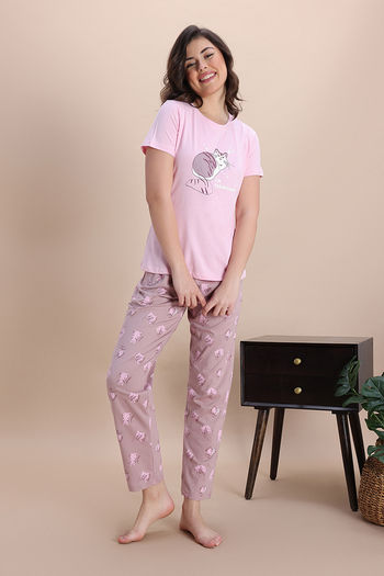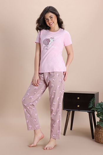 Zivame Farm Lore Knit Cotton Pyjama Set - Deauville Mauve