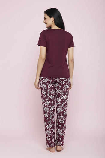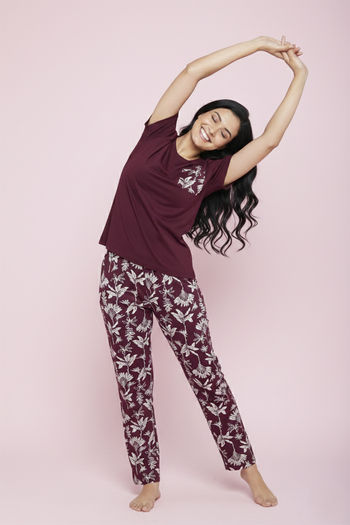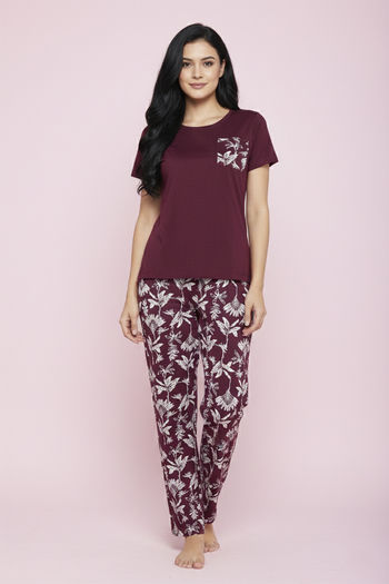 Zivame Farm Lore Knit Cotton Pyjama Set - Fig