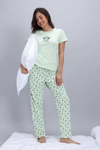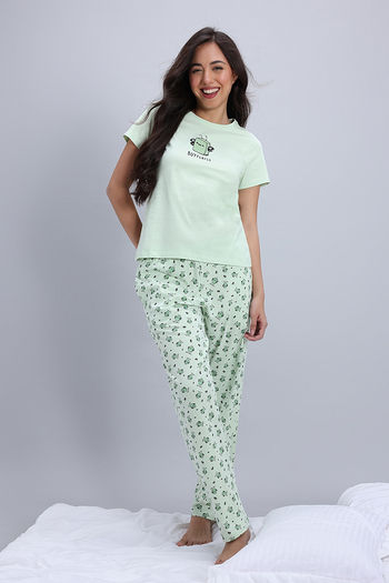 Zivame Knit Cotton Pyjama Set - Gleam