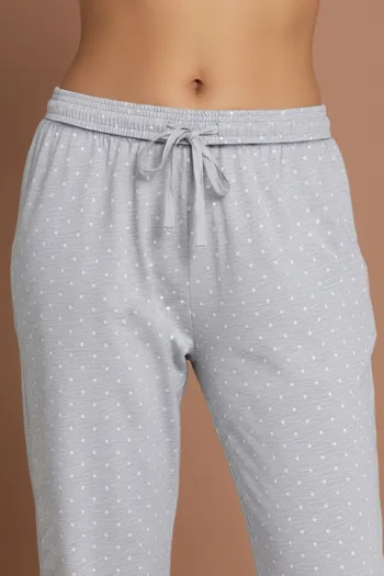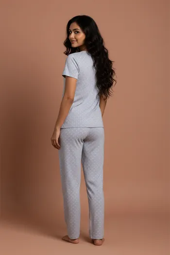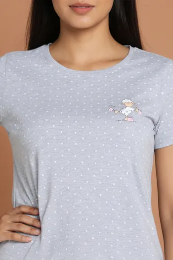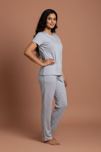 Zivame Farm Lore Knit Cotton Pyjama Set - Grey Melange