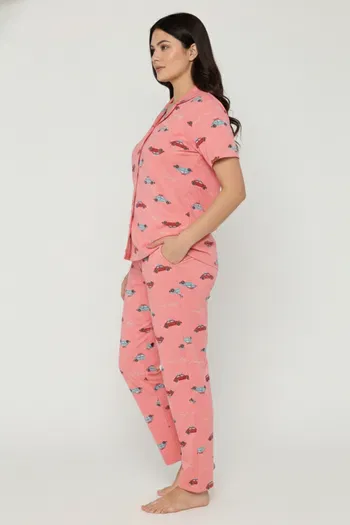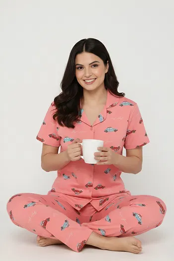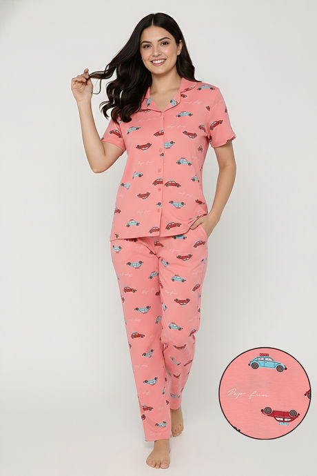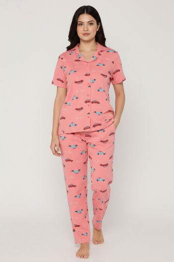 Zivame Farm Lore Knit Cotton Pyjama Set - Peaches