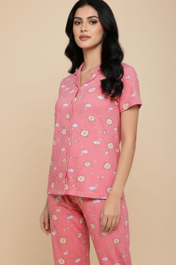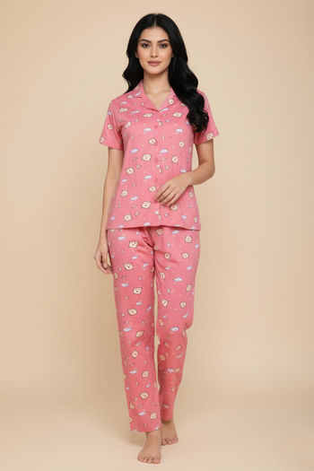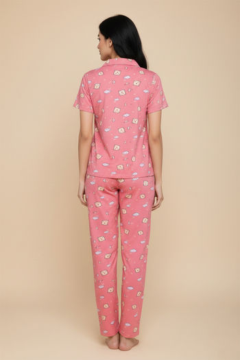 Zivame Farm Lore Knit Cotton Pyjama Set - Pink Icing
