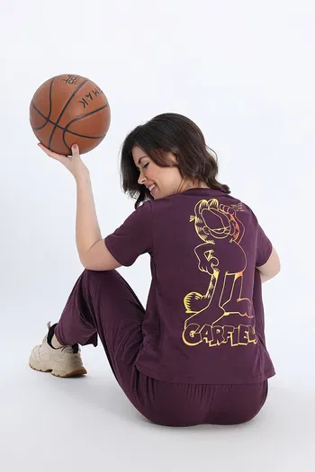Zivame Garfield Knit Cotton Loungewear Set - Fig