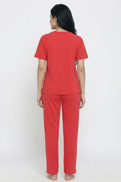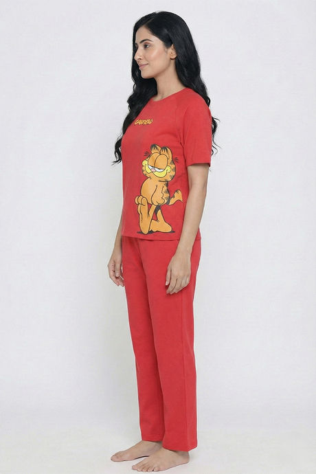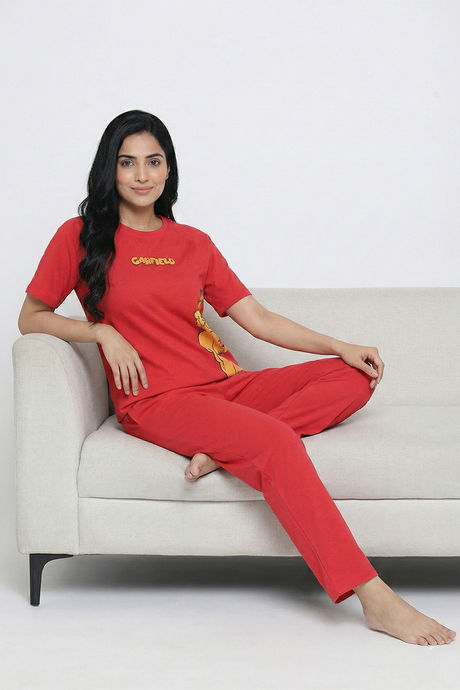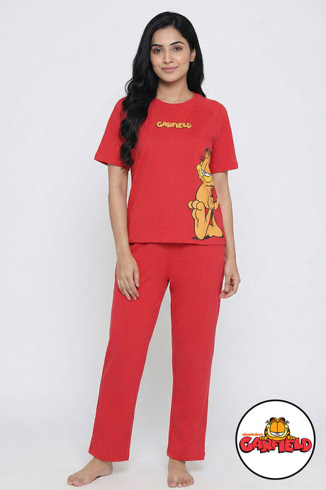 Zivame Garfield Knit Cotton Loungewear Set - Mars Red