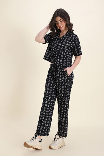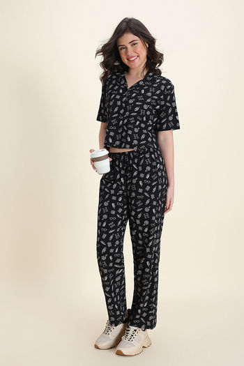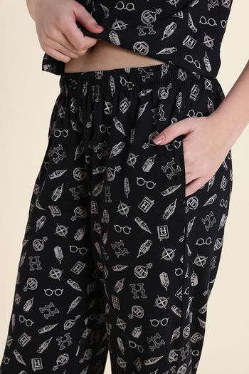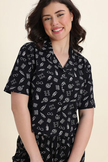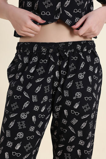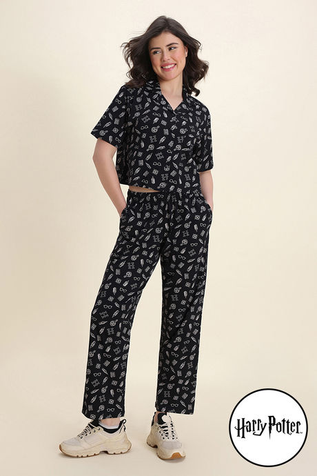 Zivame Harry Potter Knit Cotton Loungewear Set - Black Beauty