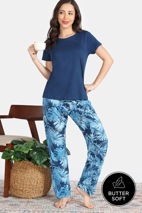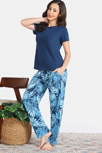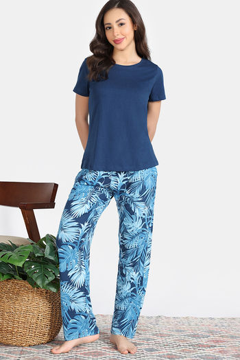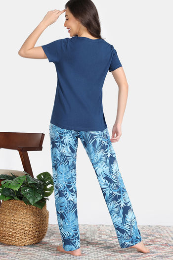 Zivame Indigo Wild Knit Poly Pyjama Set - Moonlight Ocean