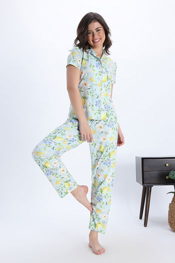 Zivame Indigo Wild Knit Poly Pyjama Set - Pale Blue