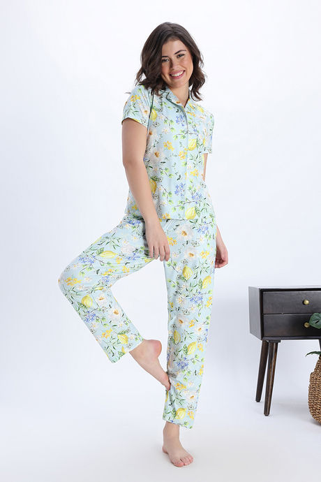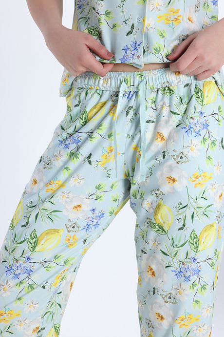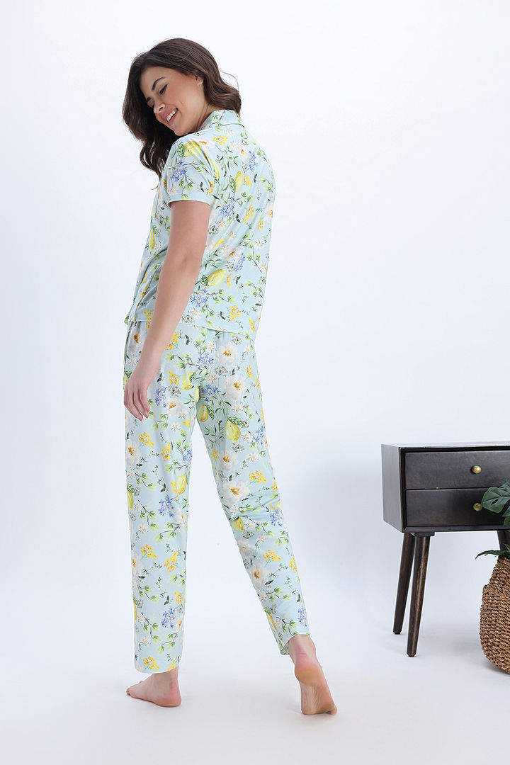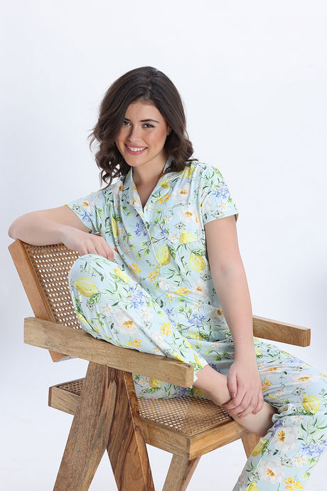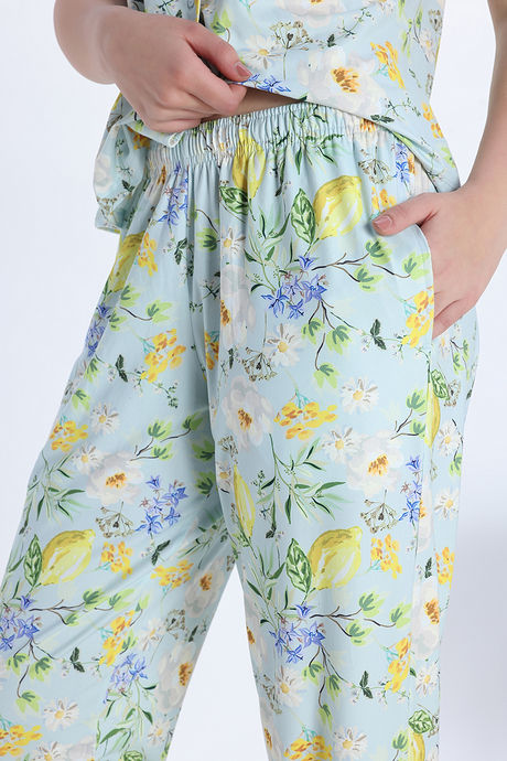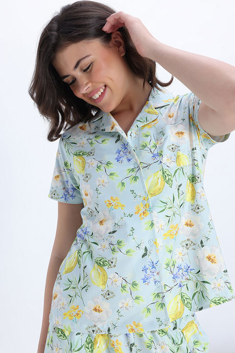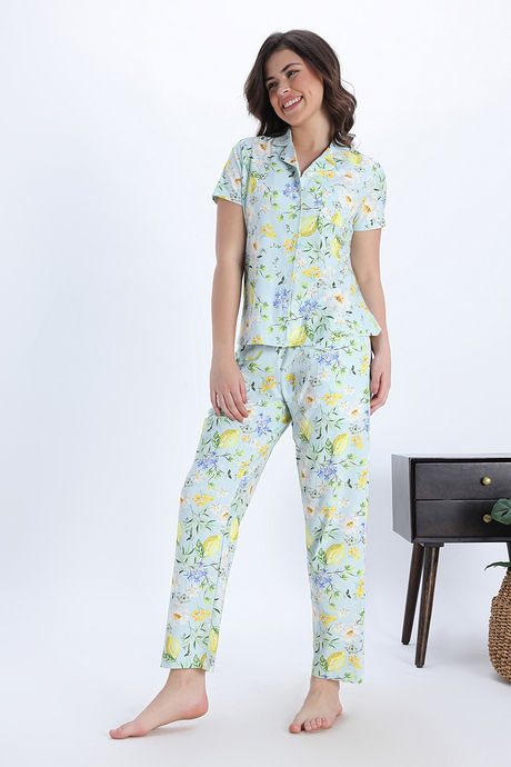Zivame Citrus Summer Knit Poly Pyjama Set - Pale Blue