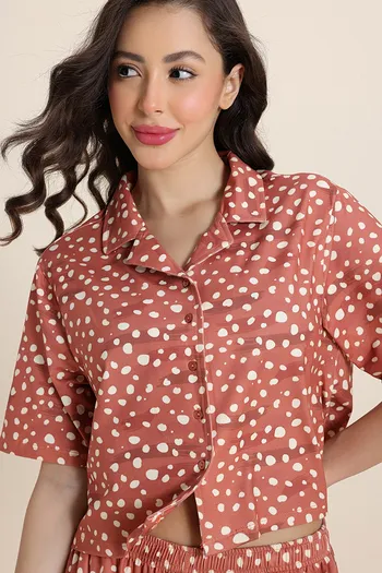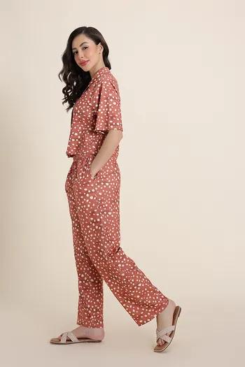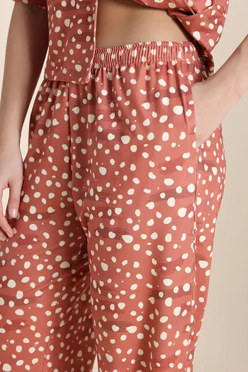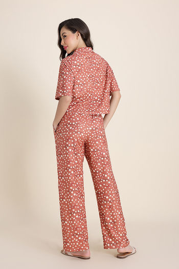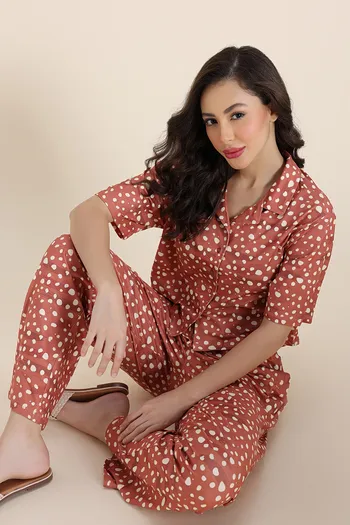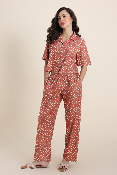 Zivame Dot & Doze Knit Poly Pyjama Set - Raw Sienna