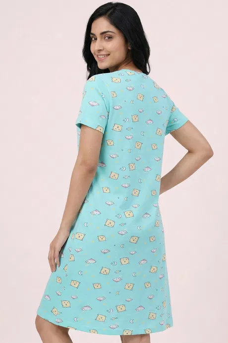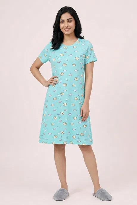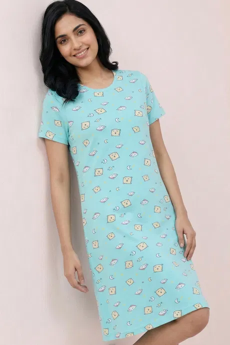 Zivame Knit Cotton Knee Length Nightdress - Island Paradise