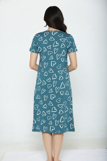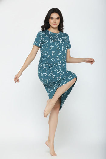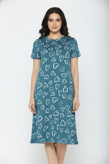 Zivame Knit Cotton Knee Length Nightwear - Dragonfly