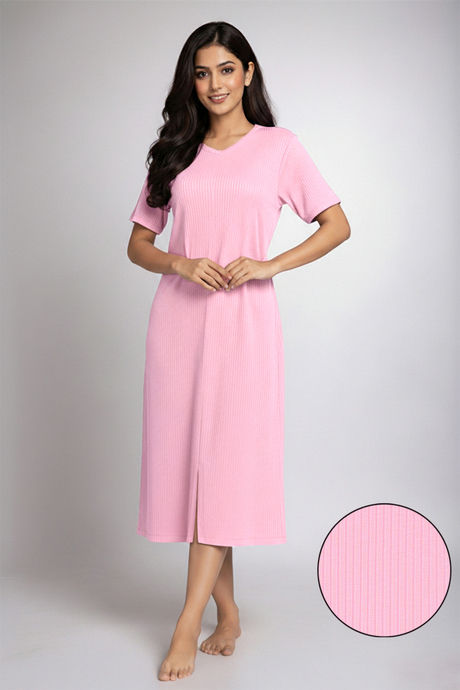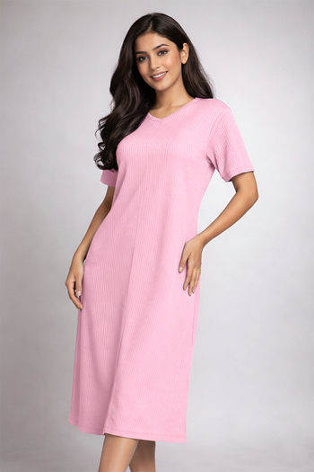 Zivame 2 Mile Fashion Knit Cotton Loungewear Dress - Cameo Pink
