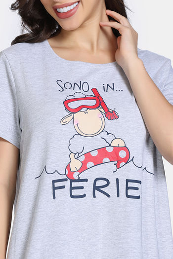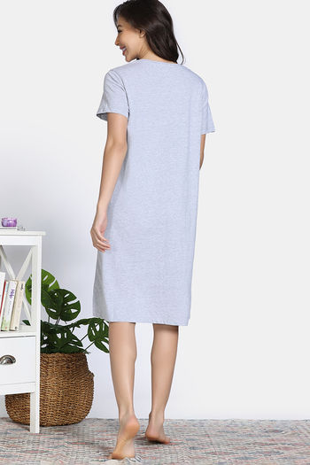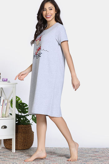Zivame Farm Lore Knit Cotton Night Dress - Grey Mel