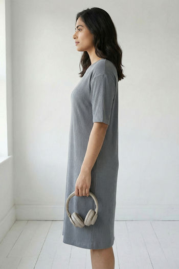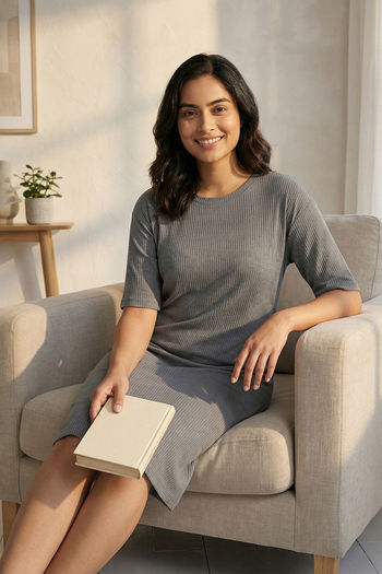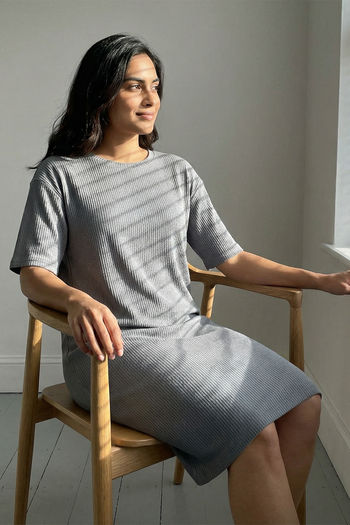 Zivame Knit Cotton Loungewear Dress - Monument