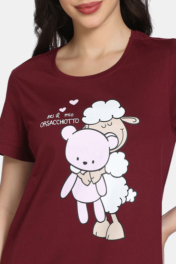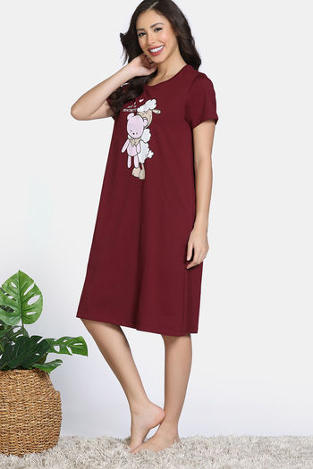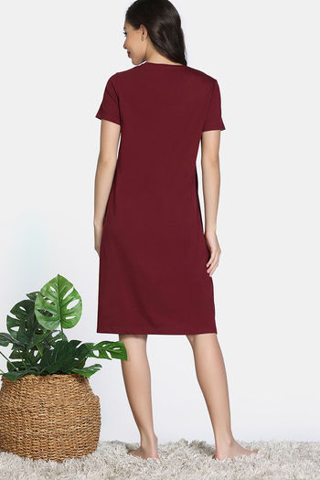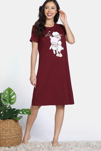 Zivame Farm Lore Knit Cotton Night Dress - Pomegranate