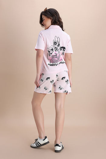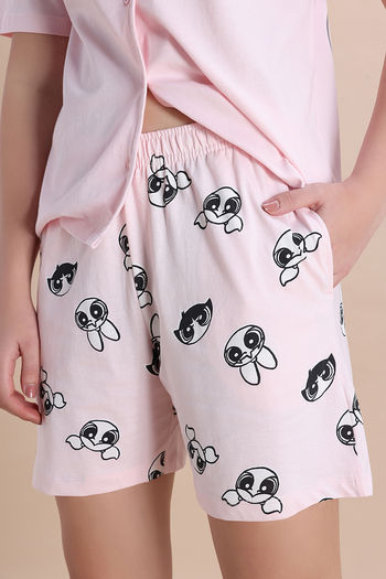 Zivame Power Puff Knit Cotton Lounge Short Set - Barely Pink
