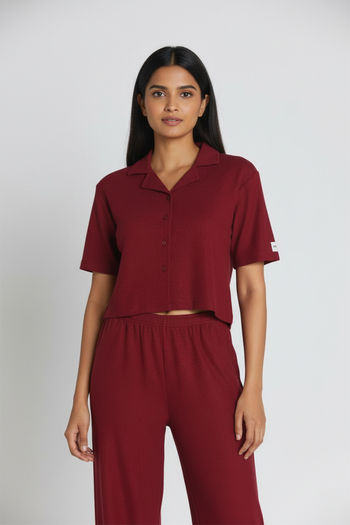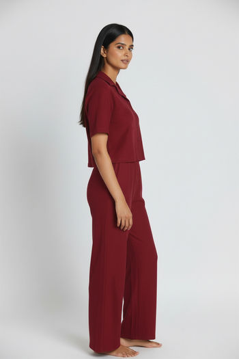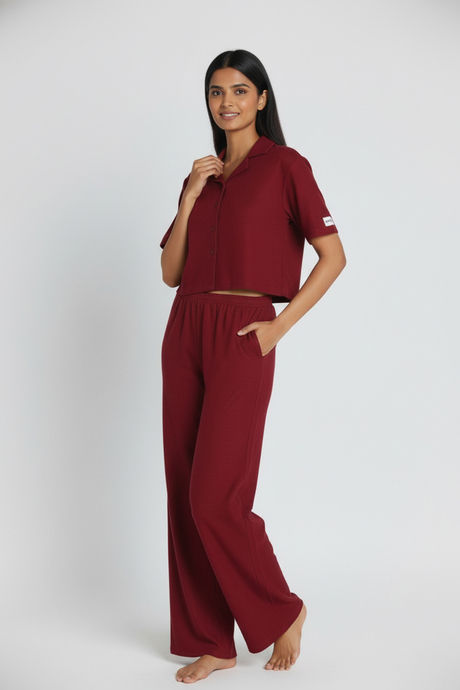 Zivame Knit Cotton Loungewear Set - Deep Claret